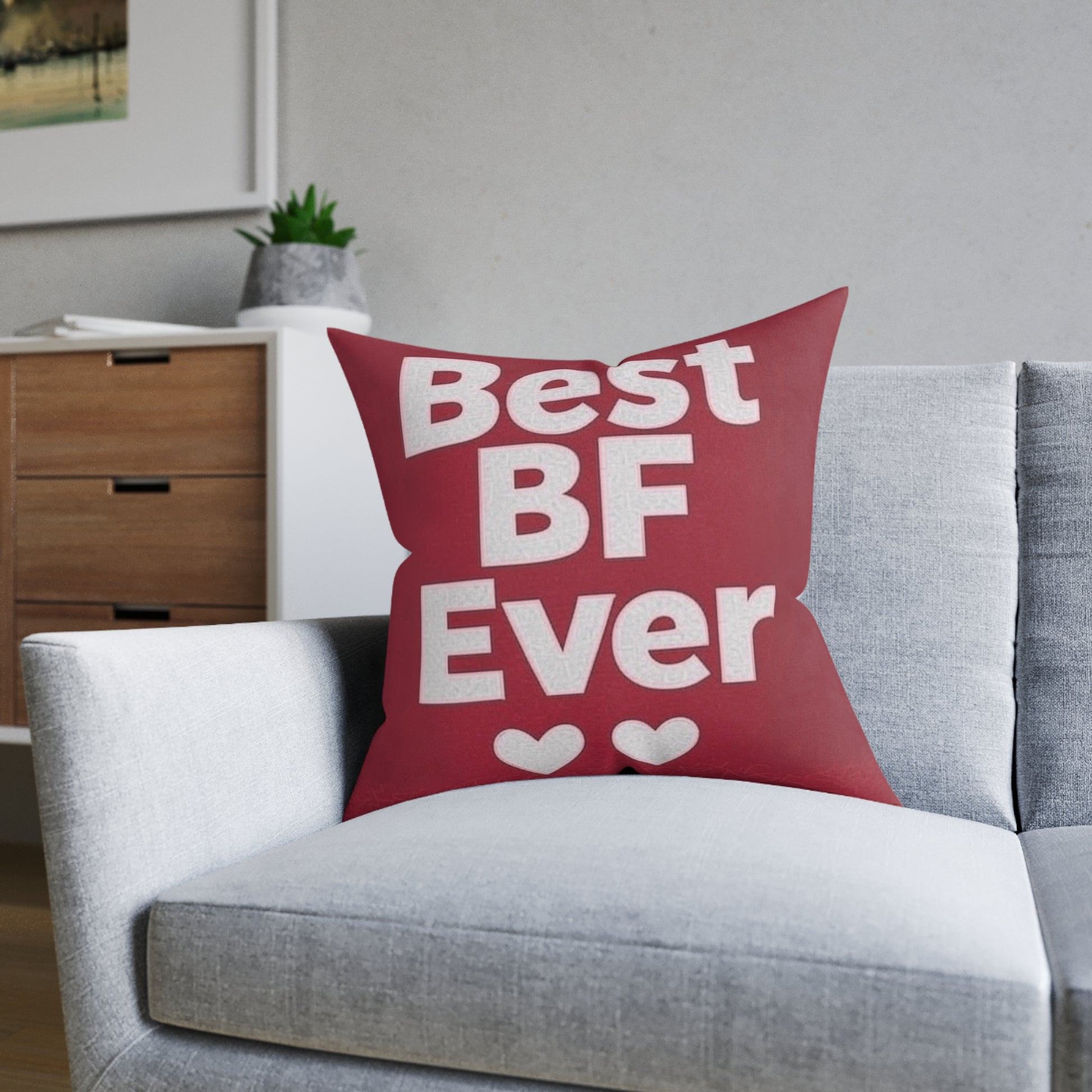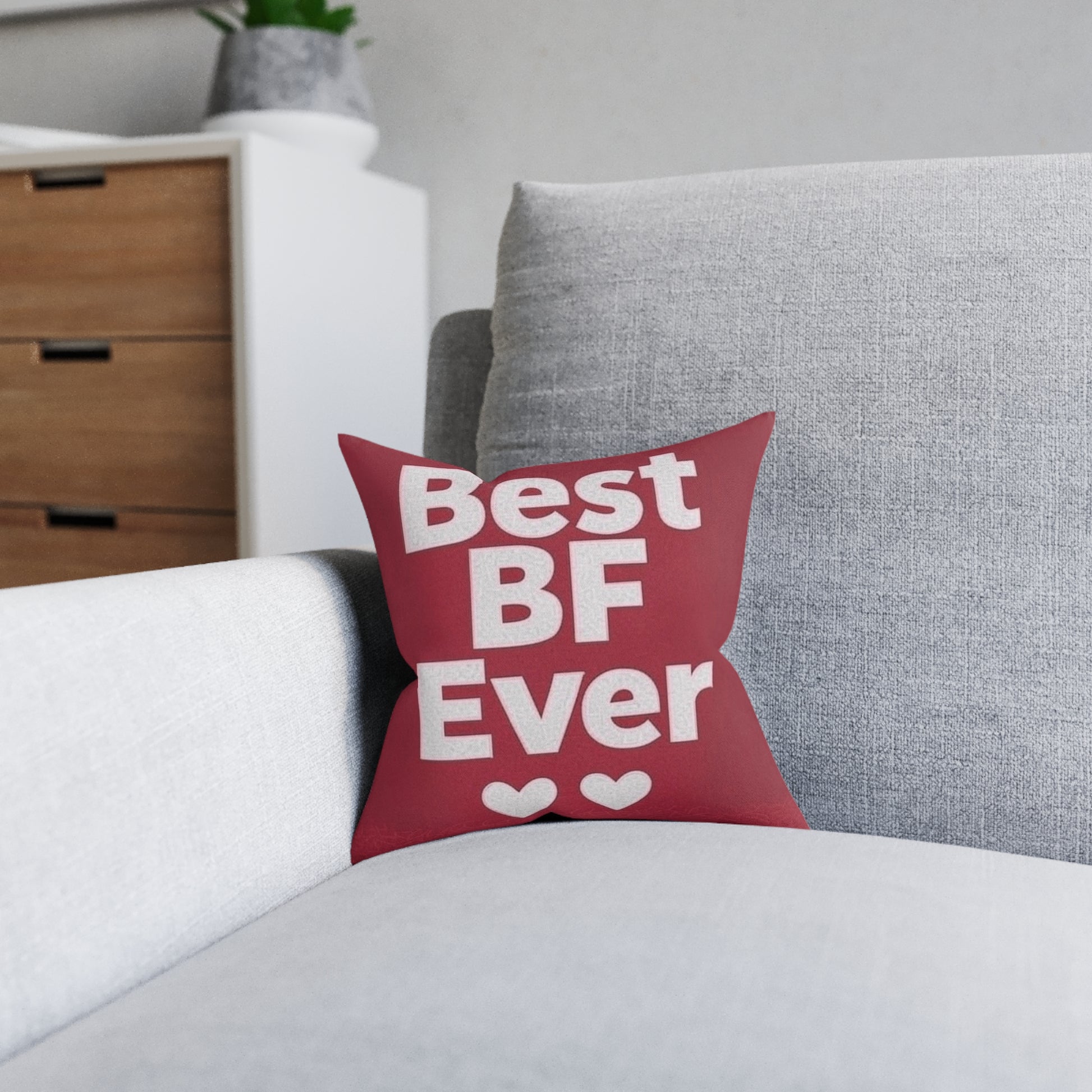 Add a custom touch to any home thanks to these personalised square pillows. Made with soft, cruelty-free faux suede that makes your comfort guilt-free, these pillows come with an oversized polyester cushion inner for that extra plump feeling of cozy support.